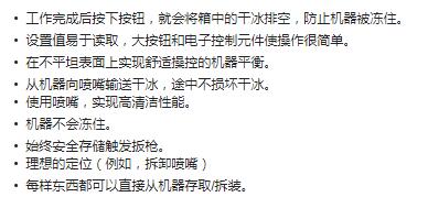 可實(shí)現(xiàn)高等級(jí)拋光效果。使用的全部組件均為高品質(zhì)。精心開(kāi)發(fā)的計(jì)量技術(shù)能夠保證獲得可靠的噴砂,而不會(huì)有冰留存到機(jī)器上。設(shè)計(jì)用于連續(xù)操作。其可靠性已經(jīng)在眾多測(cè)試中得到驗(yàn)證,包括現(xiàn)場(chǎng)試驗(yàn)及耐久試驗(yàn)。7/40底盤(pán)的氣流已獲得優(yōu)化,從而能夠引導(dǎo)可用壓縮空氣通過(guò)機(jī)器到達(dá)噴嘴,實(shí)現(xiàn)低損耗。從而通過(guò)7/40底盤(pán),即便采用較低壓力和耗氣量(3.5 m³/min)也可獲得出色的清潔效果。這種低資源耗費(fèi)的另一個(gè)優(yōu)點(diǎn)是低噪音。比如5 bar的噴砂壓力,噪聲級(jí)為ca. 80 dB(A)。7/40底盤(pán)配備有一臺(tái)殘冰清空裝置。這樣,在作業(yè)完成后只需按下按鈕就可將殘留干冰從箱罐中去除,避免機(jī)器發(fā)生凍結(jié)。新干冰噴砂機(jī)還具有集成式油水分離器。可確??煽康倪\(yùn)行。噴砂壓力及送冰速度都可通過(guò)按鈕來(lái)作調(diào)節(jié)。所設(shè)定值顯示在顯示屏上。此外,可調(diào)取運(yùn)行時(shí)間、每小時(shí)平均耗冰量及總耗冰量等統(tǒng)計(jì)數(shù)字。送冰速度與噴砂壓力的調(diào)控可通過(guò)按鍵開(kāi)關(guān)進(jìn)行鎖定。